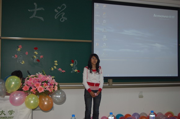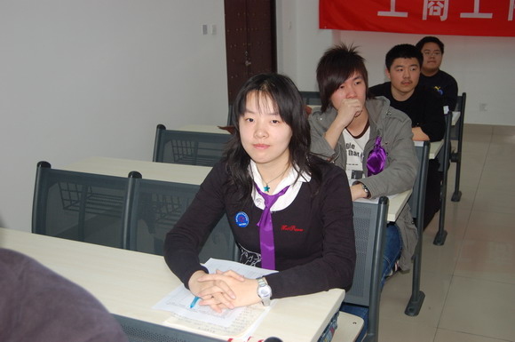 工商管理班的同学用生动幽默的语言表达了自己对大学的独特见解和感悟,他分别用四个成语概括了大学四年“大一:轻车熟路;大二:顿学累功;大三:运筹帷幄;大四:摸爬滚打。”同时他也用四句具有内在逻辑关系的建言和同学们共勉:“生活要有规律;花钱要有节制;学习一定要努力;感情必须要专一”。