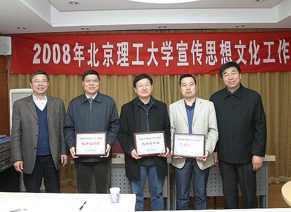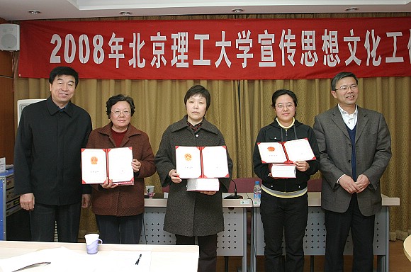 会上,郭大成书记、赵平副书记分别为北京理工大学2007年“信息科技杯”十大新闻评选获奖者代表、优秀组织奖获得者和国防科技工业“五五”普法知识竞赛获奖者、我校2007年优秀通讯员颁发了证书和奖品。