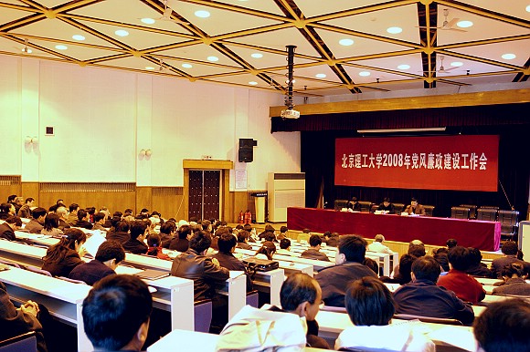 3月19日下午,学校在七号教育楼报告厅,召开了北京理工大学2008年党风廉政建设工作会。参加会议的有:学校党政领导、副处级以上干部、人大代表、政协代表、党风廉政监督员、校教代会民主评议领导干部委员会成员、民主党派负责人,离退休干部代表等。北京市教育工委联络员沈云锁同志应邀出席了会议。