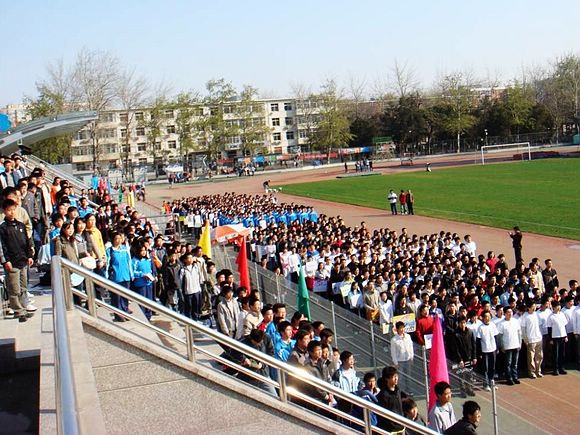 今年是奥运会的决战年,今天是奥运圣火的移交日,宇航学子打出了“宇航拥抱新奥运,运动快乐你我行”的横幅标语,体现了宇航学子对奥运会的热切企盼。上午八点半,在同学们的期待中,运动会隆重开幕!随后的入场式气氛热烈,精彩不断,各参赛班级组织的方阵依次从主席台前走过,响亮的口号,整齐的队形,新颖的表演迎来阵阵掌声。
