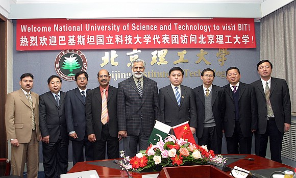 胡海岩校长在主楼二层会议室会见了阿斯加尔校长一行。会谈由杨树兴副校长主持。胡海岩校长对阿斯加尔校长一行表示热烈欢迎,并介绍我校情况。胡校长谈到中国和巴基斯坦两国自1951年正式建立外交关系以来,一直保持着友好的合作关系,在经济、文化、教育和科技各方面积极开展交流。北京理工大学与巴基斯坦国立科技大学于2001年签署了两校合作谅解备忘录,几年来,两校的合作已经取得了实质性的成果,尤其是两校的教师间有建立稳定的联系,并共同申请和开展合作项目。胡校长表示将支持两校间开展更广泛和更深层次的交流与合作。