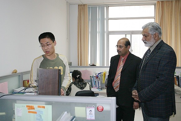 随后,在陈杰的陪同下,阿斯加尔校长参观了我校与爱立信公司数字通信技术联合实验室以及电工电子实验室。在我校国际交流合作处和留学生中心的组织下,阿斯加尔校长一行还与在我校攻读博士学位和硕士学位的巴基斯坦研究生进行了会谈。
