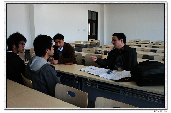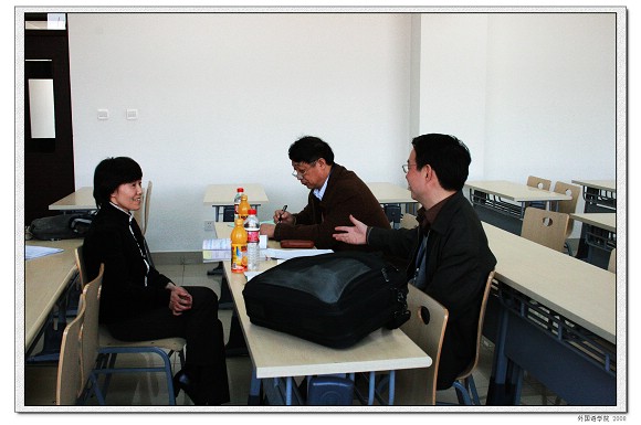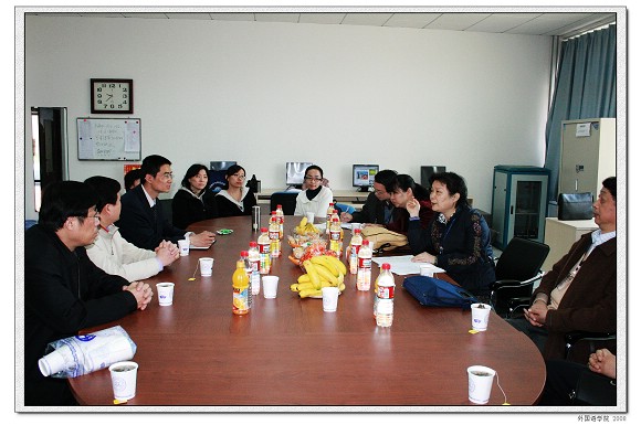2008年4月13日上午,教育部专家组中山大学夏纪梅教授,山东大学贾卫国教授、北京科技大学张敬源教授、清华大学张文霞教授、北京邮电大学王斌教授等一行5人来到我校良乡校区进行为期一天的大学英语教学改革示范学校中期检查。我校外国语学院党委书记王文清,教务处副处长闫达远,外国语学院副院长李京廉,大学英语部主任汪宏,副主任张莱湘以及大学英语部骨干教师参与了本次检查工作。