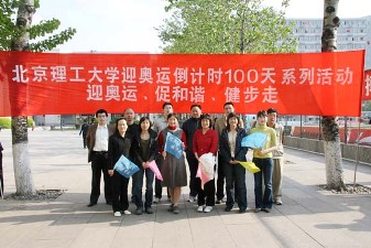 2008年4月23日,北京理工大学工会举办迎奥运倒计时100天系列活动——“迎奥运、促和谐、健步走”活动,此项活动得到了基层单位党、政领导及工会的大力支持。由部门工会组成的19支队伍,300多人参加了健步走活动。在全体队员的积极参与下,围绕理工校园一周,健步走活动圆满成功。