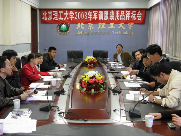 2008年4月23日,北京理工大学2008年军训服装评标会在主楼二层会议室召开。评标小组成员由学校国资处、财务处、学生处、团委、审计室、监察室等负责人以及学生代表组成,体现了“公平、公正、公开”的原则。