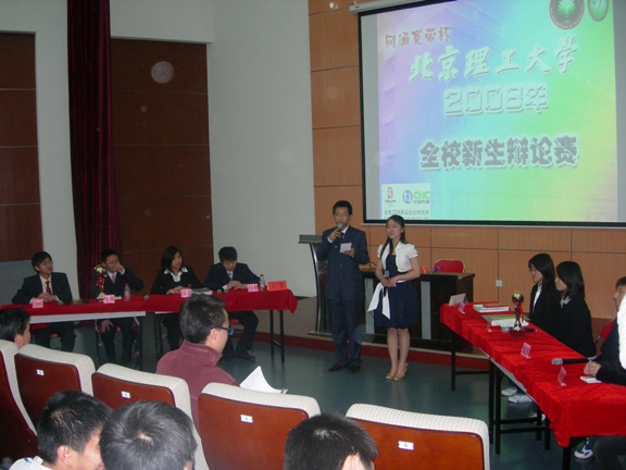 4月25日晚,由生命科学与技术学院8名07级新生组成的辩论队经过激烈的角逐,在2008年北京理工大学“网通宽带杯”全校新生辩论赛决赛中夺得了比赛冠军。