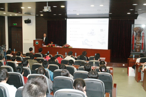 随后,迈瑞集团国际市场行政总监余深衍先生代表企业发言,余先生介绍了公司从成立以来一直坚持务实、创新的工作理念,并且将人才引进和培养作为公司的重要战略措施,同时也了解到如北京理工大学这样的国内知名大学,为国家和社会培养了大量人才,校企联手创办迈瑞俱乐部,将企业和学校的资源相结合,可以更好的培养人才,也是企业方面希望看到的,余先生也对学校和学院的大力支持表示衷心的感谢。