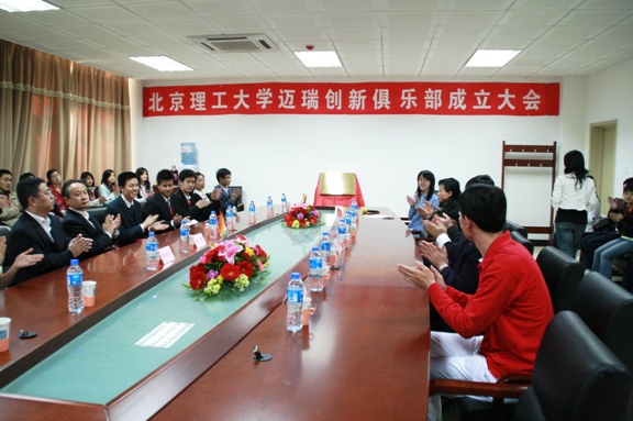 2008年4月26日,北京理工大学迈瑞创新俱乐部在研究生楼111会议室举行成立大会及揭牌仪式。迈瑞创新俱乐部是校企共建的学生创新和人才培养基地,深圳迈瑞生物医疗电子股份有限公司作为国内医疗设备领域高举自主创新旗帜的民族企业,在不断扩大经营,拓展业务的同时,也十分注重后备人才的培养,并着手在全国著名高校设立迈瑞创新俱乐部,目前北京只在清华大学和我校建立该俱乐部,旨在发现和培养更多的优秀人才,为其进入迈瑞提供直接的渠道。