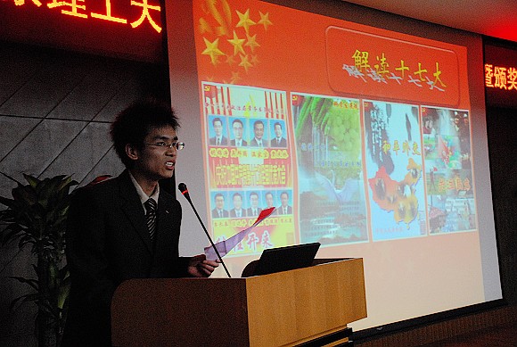 本届理论学习创新大赛主题是“学习十七大精神,共绘和谐蓝图”。党的十七大召开后,我校共产主义学习实践总会组织各院理论社团干部骨干对十七大精神进行了学习、宣传和实践,同时各院理论社团也针对十七大精神的学习和宣传举办了各式各样的活动。在本次大赛中,各院理论社团对各自的特色活动进行了集中展示和介绍。
