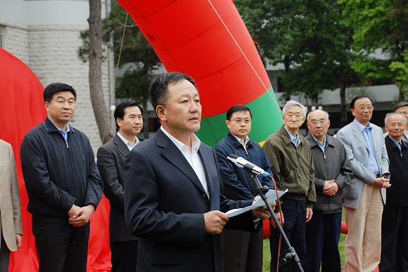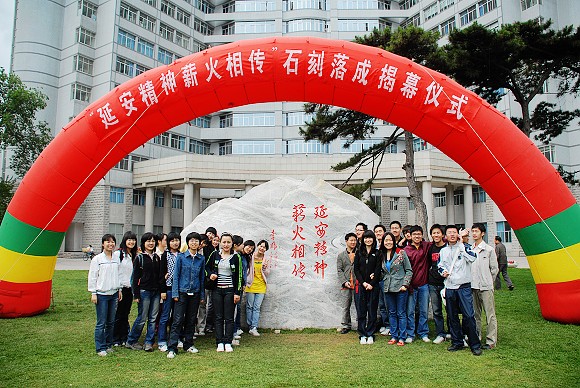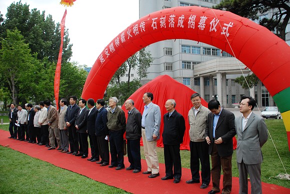 5月12日上午10:30,“延安精神 薪火相传”石刻落成揭幕仪式在中心花园隆重举行。