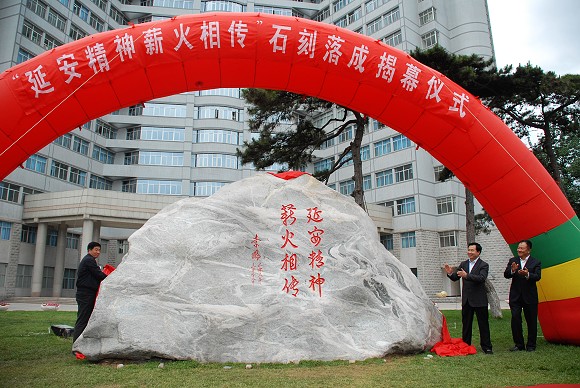 延安市委书记李希、校党委书记郭大成为石雕刻揭幕。