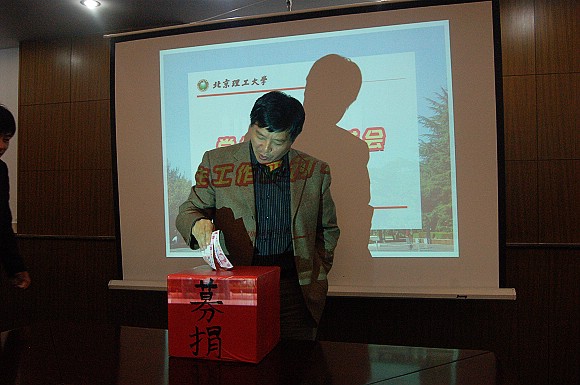 5月12日晚校研究生会、学生会、社团联合会的学生干部在连夜召开会议研讨了募捐活动的各个细节,快速准备了横幅、捐款箱、桌椅等。并连夜起草了给全校学生的倡议书,活动发起者之一北京理工大学研究生会主席赵梓君同学表示:“作为一名大学生,我们最为关心灾区的学生,关心他们的生命安全,关心他们能否尽快恢复自己的学业。北京理工大学的学生应该将自己微薄的力量汇聚在一起,集中力量帮助我们最能帮助的人,为此我们号召全校同学把我们的爱心汇聚起来一同来帮助受灾非常严重的都江堰聚源中学的学生。我校本次活动的所有的捐款,将通过北京青少年发展基金会定向转交给都江堰聚源中学。”