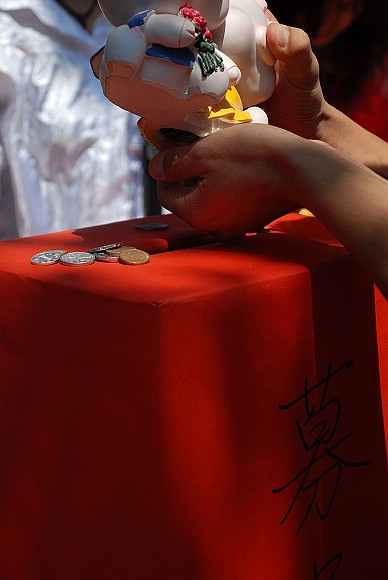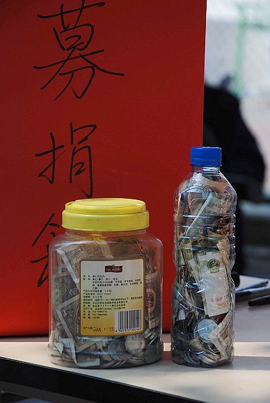 一个男生拿着自己寝室所有的储钱罐,代表其他正在上课的同学把他们近期储存的所有零钱全部捐给了灾区人民。他的这个举动顿时吸引了许多同学们的目光,带动了越来越多的人参加捐款活动。