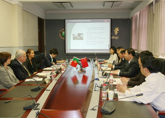 Manuel Mota副校长表示国立米尼奥大学非常重视与中国高校的交流与合作,希望与我校在科研、教学等方面积极开展合作。Manuel Mota副校长还详细的介绍了国立米尼奥大学的基本情况和国际交流合作的情况。据介绍,国立米尼奥大学建于1973年,是葡萄牙一流的公立大学。该校目前在科研水平、教学质量、研究生数量等方面都位于葡萄牙大学中的前列,科研覆盖学科非常广泛,在工科领域、生命科学、信息科学技术等领域具有很强的实力。国际交流与合作覆盖全世界,目前与包括MIT、哈佛、剑桥等300多所大学有合作关系,在学生交换、学术交流、科研合作等方面开展实质性合作。