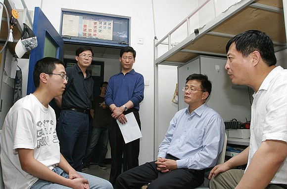 张建明副书记来到家在四川绵阳的汪国尧同学宿舍后,关切地询问了汪国尧同学家乡的受灾情况和目前的生活情况。张副书记对汪国尧同学所表现出来的坚强和自信表示欣慰。张副书记告诉汪国尧同学,虽然发生这样严重的灾害是大家都不愿看到的,但请相信党和政府是一定能够带领人民群众重建家园的,同学们要稳定心态,好好学习,以优异成绩回报关心和帮助过自己的人们,将来为国家和社会做出自己的贡献。