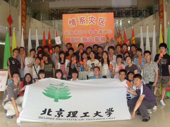 2008年5月12日发生的汶川大地震令举世震惊,灾害发生以来,我校广大青年学生通过捐款、报名献血以及其他方式积极支援抗震救灾!北京理工大学场馆观众服务团队的近300名奥运、残奥志愿者积极参与学校组织的抗震救灾行动,受到了奥组委志愿者部的高度评价。据统计观众服务团队志愿者共捐款11000余元,共有60多名志愿者报名献血,并于血液中心取得了联系,要求进行无偿献血,倡议一出,报名踊跃。