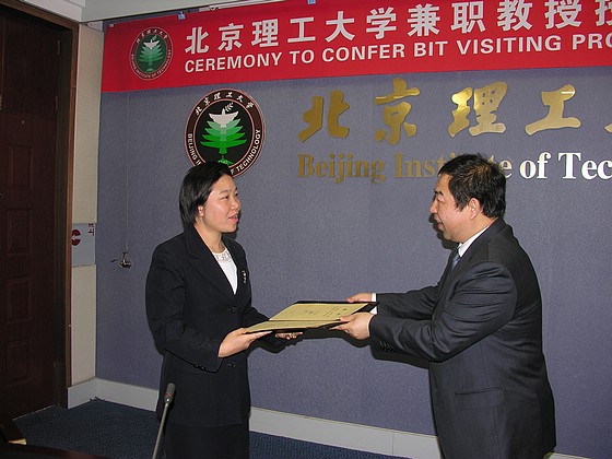 副校长杨树兴教授代表学校向王嗣俊教授颁发了北京理工大学兼职教授聘书,并向王嗣俊教授介绍了学校近年来的发展情况,特别是在教学与科研国际合作方面取得的成就以及学校国际化发展的战略思路,勉励王嗣俊教授加盟北京理工大学后为学校的国际合作及学术发展做出贡献。