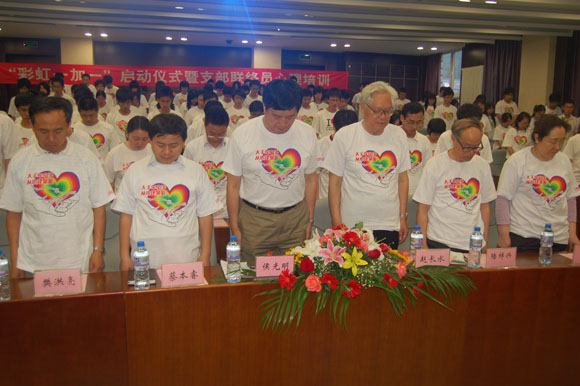校党委副书记侯光明、工会常务副主席蔡本睿、老干部处分党委书记郑焱、党委宣传部副部长樊红亮、原统战部部长赵长水、原管理学院办公室主任陆祥兴、人文学院社会工作与心理学系系主任贾晓明、学工处心理咨询中心刘翼灵老师、各学院分团委书记和中关村校区及良乡校区的107个团支部的107名心理联络员参加了本次启动仪式。
