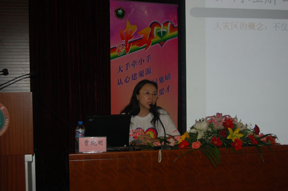 启动仪式结束后,中国心理危机与灾难心理援助项目组专家、人文学院社会工作与心理学系系主任贾晓明教授对各支部进行了专题培训。贾老师从“大地震心理影响?怎样提供帮助?我们到底为灾区人民能做什么?写信的时候要说什么?我们怎样看这次大地震?我们怎样看灾区人民、特别是学生?”等问题入手用专业的心理知识对心理联络员进行了辅导,她指出,“我们不能从自己的感情出发,一厢情愿的去为灾区人民做事情,一定要分清我们对他们的帮助是他们的需要还是出于我们自己的需要。一定要考虑灾区人民的感受。通过参加这些活动希望大家能够真正的学会理解人性,学会更好地面对大自然的灾害,所有这些经历都将成为大家的宝贵财富。”