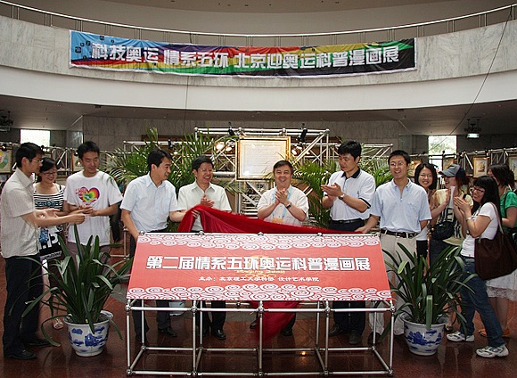 2008年6月11日上午,由北京理工大学科协和设计艺术学院共同举办的第二届北京迎奥运科普漫画展在中心教学楼一层大厅展出,校党委副书记、副校长杨宾,科技处副处长徐文国,校团委副书记代方震,设计艺术学院分党委副书记、副院长杨海,以及科技处任杰老师、设计艺术学院分团委所有老师参加了开展仪式。