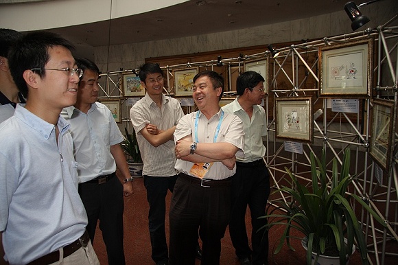 上午10:30,开展仪式正式开始,几位领导在一片鼓掌声中揭开了本次展览标牌的幕布,标志着本次展览正式开始,随后,杨宾副书记在其他几位老师的陪同下饶有兴趣的参观了本次展览。作为本次理工大学奥运场馆的场馆主任,杨副书记对于本次展览非常重视,认真详细的观看了每一幅作品,并与在场的其他老师一起交流评论,感受着科技奥运的魅力。