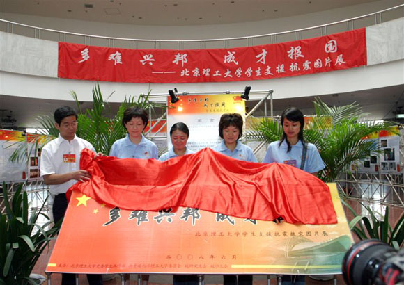 校团委、校研究生会还将展览的内容编辑成了《多难兴邦 成才报国——北京理工大学学生支援抗震救灾图册》。学校将第一批画册作为礼物送给了参加揭幕仪式的代表和来宾,本次展览将持续到6月19日,欢迎广大师生前去参观!
