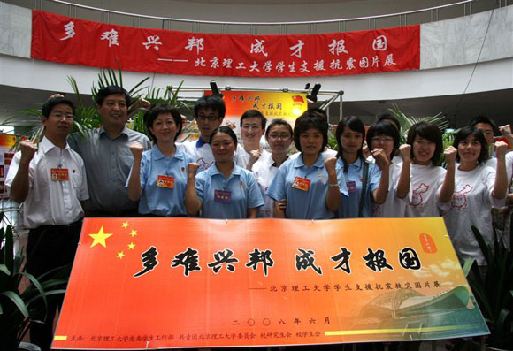 为传承发扬广大北理学子关爱社会、回报人民的奉献精神和高尚品质,学工部、校团委、各学院分团委以及校研究生会、校学生会联合举办了“多难兴邦 成才报国”——学生支援抗震救灾图片展。本次展览将同学们在支援抗震救灾过程中的部分珍贵的画面制作成展板、画册,以激励现在和将来的北理学子继续关心、支持和参与长期而艰巨的灾后重建工作。