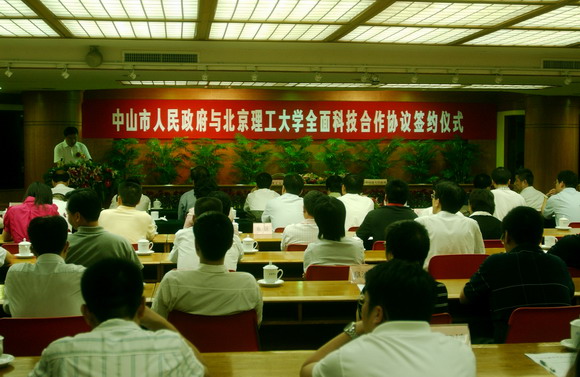 6月11日,我校与中山市人民政府签署全面科技合作协议,这是贯彻落实广东省教育部省部产学研会议精神、推进双方产学研合作的一项重要举措。标志着双方共同致力于自主创新,加速北京理工大学科技成果转化,推动中山市经济更好更快发展迈出一大步。我校校长胡海岩、副校长赵长禄、副校长李和章、学校办公室主任姚利民、科技处副处长陈鹏万以及信息学院和软件学院相关教师参加了在中山市政府会议中心举办的签约仪式。