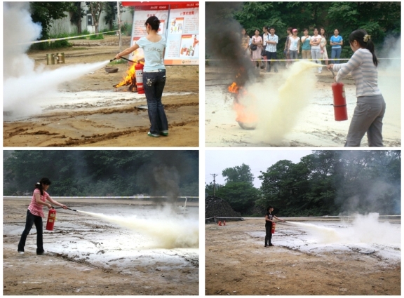 讲解培训环节结束后,实战演练开始,经过工作人员的精心筹备,现场点燃了两个模拟火源,同学们按照之前的讲解要求,手持灭火器,跑步至指定位置,对准火源准确喷射,在一次次的喷射中,同学们亲身感受了面对火源的“临战”感觉,在实际演练中掌握灭火器的使用知识。