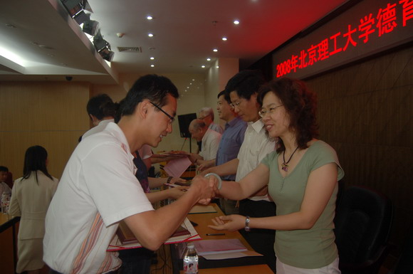 今年的优秀德育论文评选在离退休干部党委的大力支持下,成立了由20名老专家老干部组成的评审小组专门评审,评选出一等奖5名、二等奖15名、三等奖20名、优秀奖154名。学生工作部副部长娄秀红宣布了《关于2008年北京理工大学优秀德育答辩论文的表彰决定》,殷雅群、仰欣、郑帅、张韶光、张菁等共194名同学的德育论文受到大会表彰奖励。