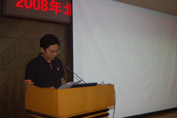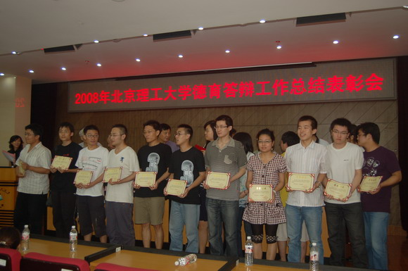 6月24日,2008年北京理工大学德育答辩工作总结表彰会在图书馆一层报告厅隆重召开,学校党委副书记侯光明,学生工作部部长刘明奇、宣传部部长贺亚兰、离退休干部党委常务副书记郑焱、校团委副书记代方震、校团委副书记赵健、学生工作部副部长娄秀红、校报主编许欣,各学院主管学生工作的副书记、副院长,辅导员、以及194名获奖学生参加了总结表彰会,出席本次表彰会的还有两位德高望重的老前辈,他们是担任本次德育答辩优秀论文评委的离退休干部党委委员、原校党委统战部部长赵长水老师和离退休干部党委委员、原车辆工程学院党委书记马春法老师。会议由学生工作部部长助理梁颖主持。