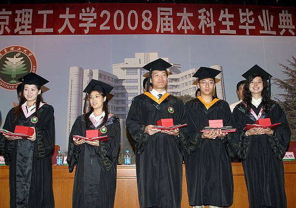 出席典礼的校领导分别为优秀毕业生代表颁发了毕业证书。2008届本科毕业生钱天翼代表全体毕业生发言,表达了对四年来学校的培养和师长的教诲的感谢,并表示要牢记师长教诲,铭记母校“团结、勤奋、求实、创新”的校训,秉承母校传统的延安精神和军工文化,投身社会服务社会,奉献青春,实现自我。生命学院罗爱芹教授代表全校教师向毕业生做了情真意切的临别寄语,表达了对同学们的谆谆嘱托和深切祝福。她希望同学们无论走到哪里都不要忘记自己是北理人,要继续努力学习,承担社会责任,以积极的心态面对人生,活出生命的精彩。在未来的岁月里,北理工的老师会一如既往地关注着同学们的成长,为同学们加油喝彩!