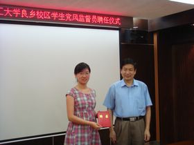 良乡校区直属党支部书记刘影秋表示一定全力支持学生党风廉政监督员的工作,并希望监督员把工作扩展到学习、生活的各个领域。