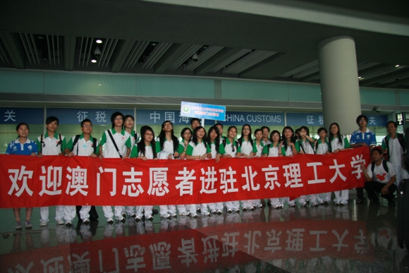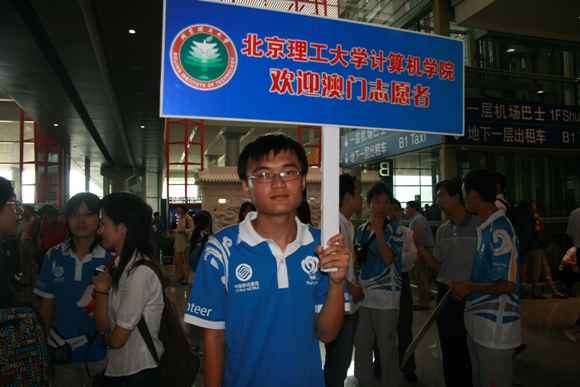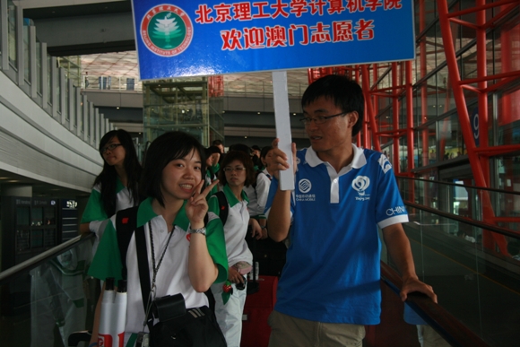2008年8月1日是澳门志愿者到达北京参加奥运服务的日子。由北京理工大学计算机科学技术学院的学生志愿者组成的接待小组,在经过了细致的准备工作之后,一行7人,来到首都机场,以最灿烂的微笑和最热情的拥抱迎接了30位进驻我校的澳门志愿者。
