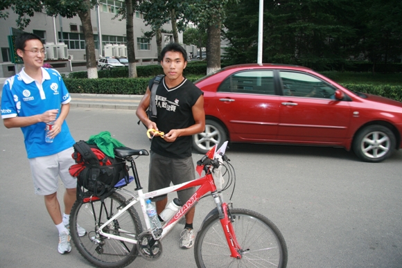 这是用自行车作为唯一的代步方式,由澳门出发,用了28天到达北京理工大学的澳门志愿者黄志强.