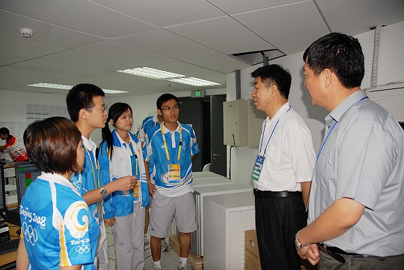 8月6日上午,校党委书记郭大成、党委副书记侯光明及学生工作处处长刘明奇、团委书记徐强、学校办公室副主任张瑜、团委副书记代方震等一行到五棵松场馆群,慰问我校赛会志愿者及我校负责接待的京外、境外志愿者。郭书记一行受到了五棵松场馆群李燕生副主任的热情接待。