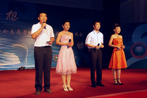 担任本次联谊会的主持人分别是来自北京理工大学的温晓萌、吉林大学的尚进、南京农业大学的李根与俄罗斯华侨陈飞。联谊晚会在京外、境外志愿者与北京理工大学志愿者代表的演唱《北京欢迎你》中拉开帷幕。