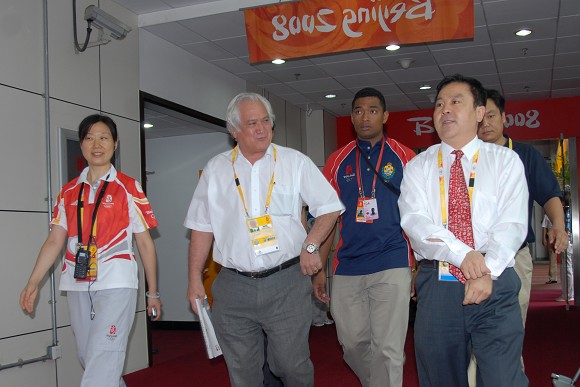继蒙古国总统那木巴尔·恩赫巴亚尔夫妇、塞尔维亚总统鲍里斯·塔迪奇、汤加王储图普托阿夫妇等国际贵宾团队来我馆观赛后,14日上午,我场馆又迎来了汤加首相塞韦莱和夫人一行。