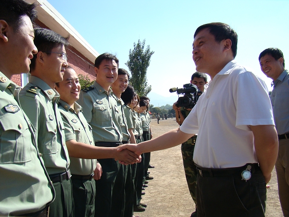 9月5日上午,北京理工大学校长胡海岩院士、党委副书记侯光明来到北京八达岭学生军训基地,看望和慰问了正在训练的我校07、08级参训学生及全体带队干部。