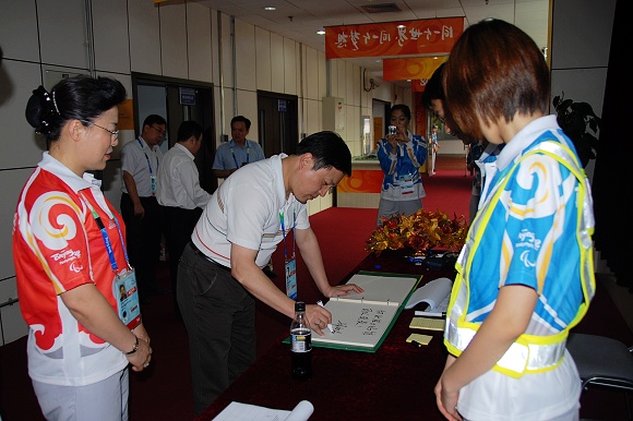 【图】校长胡海岩院士观看残奥会比赛并勉励体育馆服务团队