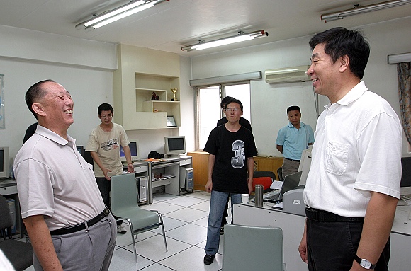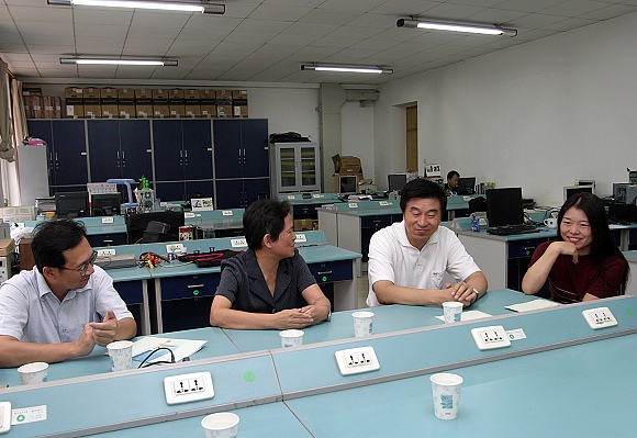 郭大成首先来到信息科学与技术学院电子电工试验中心看望了在一线工作的沈庭芝、盛新庆、杜鹃三位教师并与他们亲切交谈,详细了解他们的工作生活情况,认真倾听他们对教育教学事业的体会和建议,并向他们辛勤耕耘所取得的成绩表示祝贺,同时鼓励他们继续发扬我校勤奋、严谨、艰苦奋斗的优良传统,发扬新时期人民教师的高尚品德,创造更多佳绩。