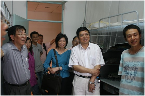 学院领导热情地给同学们分发了月饼,并仔细询问了同学们近期的学习、生活情况,认真听取了大家的各种意见和建议。薛书记、仲院长、郝群副书记副院长还向2008级新同学们简略地介绍了大学学习的基本情况,鼓励同学们一定要好好学习,学习是根本,只有成绩上去了,大学生活才会过得充实而有意义。