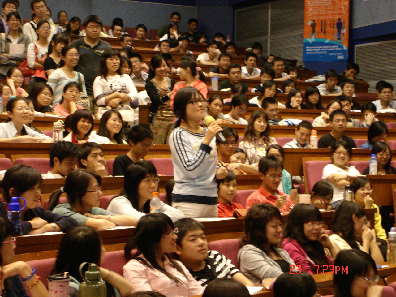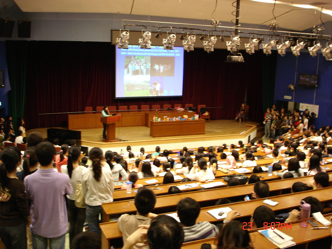 当晚天气阴冷,秋雨潺潺,但是丝毫没有影响同学们参与的热情:到开场时间,中教一层报告厅里500多个座位上,过道里,讲台下都坐满了前来参加招聘会的同学们。