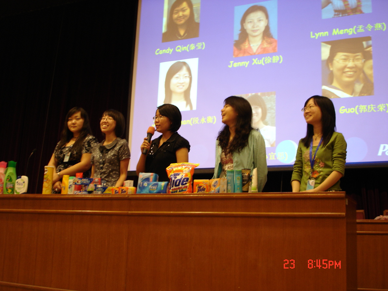 宝洁公司为前来参会的同学们准备了薯片,沐浴液,洗衣粉等奖品,台下有同学回答问题正确,或是提出问题的时候,工作人员就会送上其中一件作为奖励。几次互动下来,全场半数同学都获得了“礼物”。这样细心和人性化的安排让同学们感到了企业求贤若渴的暖意。