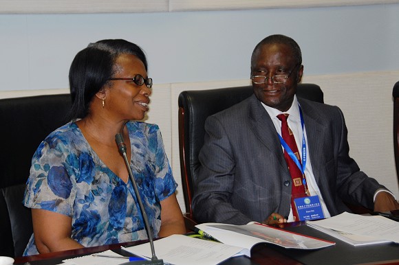 Modupe Ogunlesi副校长(左)也介绍了拉各斯大学的基本情况,并畅谈此次参加在北京举行的非洲孔子学院建设工作会议的心得,她认为两所院校间的交流不仅限于学术方面,在文化、科技创新等各个领域都可以开展一系列的交流与合作。她介绍说,拉各斯大学建立于1962年,几十年的时间已经发展成为拥有3万多名学生和3千多教职员工的重点大学,下设包括艺术、社会学、环境学、法学、工程学、商务管理和教育学等的9个系和1个医学院。拉各斯大学希望能够与世界一流大学加强往来,今天与北京理工大学签订合作协议将是又一里程碑,希望今后与我校能够进行积极交流与合作。