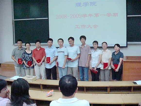 9月12日理学院召开全院教职工大会。对参加青年教师教学基本功比赛的获奖选手进行了大会表彰。