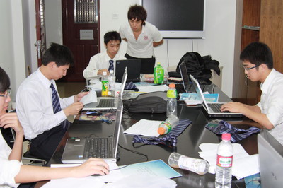 在5个月的准备工作中,竞赛队的同学们在指导教师的带领下发扬了不畏艰难、勇攀高峰、吃苦耐劳、持之以恒的科学研究精神。在暑假2个月的时间,他们背起了铺盖住进了软件学院的锅炉房机房!在酷热的暑假,他们在不断地调研系统的设计背景、设计系统的解决方案;在举国欢庆的奥运时刻,他们在机房默默地进行系统的开发、进行实际的应用测试;在十一国庆,他们更是忍受着一次又一次地批评、一次又一次地演示修改,进行了6次公开的决赛答辩演示和无数次的私下演练和答辩!