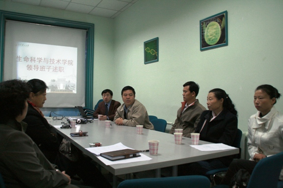 2008年10月31日,生命科学与技术学院按照校党委关于2008年中层领导班子换届工作的相关精神,在学院会议室举行全体教职工大会,传达上级精神、现任领导班子进行述职、组织教职员工开展民主推荐。参加本次大会的有校党委杨宾副书记、副校长,校纪委监察部副处级监察员殷惠萍老师,生命学院党政领导班子成员及全院教职工,大会由分党委书记李兰东主持。
