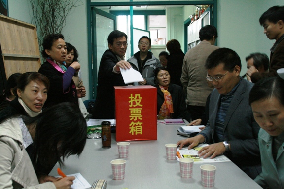 老师们将民主推荐意见投入票箱