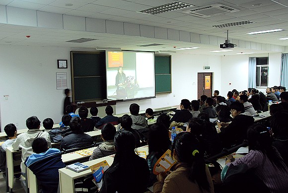 第三位报告团的成员是管理与经济学院2004级本科生刘斐,她的报告题目是《选择——人生的契机》。作为一名“大学生村官”,也是报告团唯一一名走上工作岗位的毕业生,她用了两个问号开题:你想过为自己的大学四年选择一个目标吗?你想过选择怎样的方式来实现这个目标吗?并围绕这两个问号讲述如何做好人生的选择。